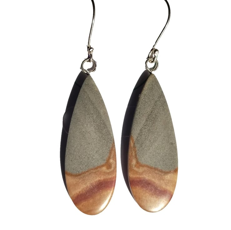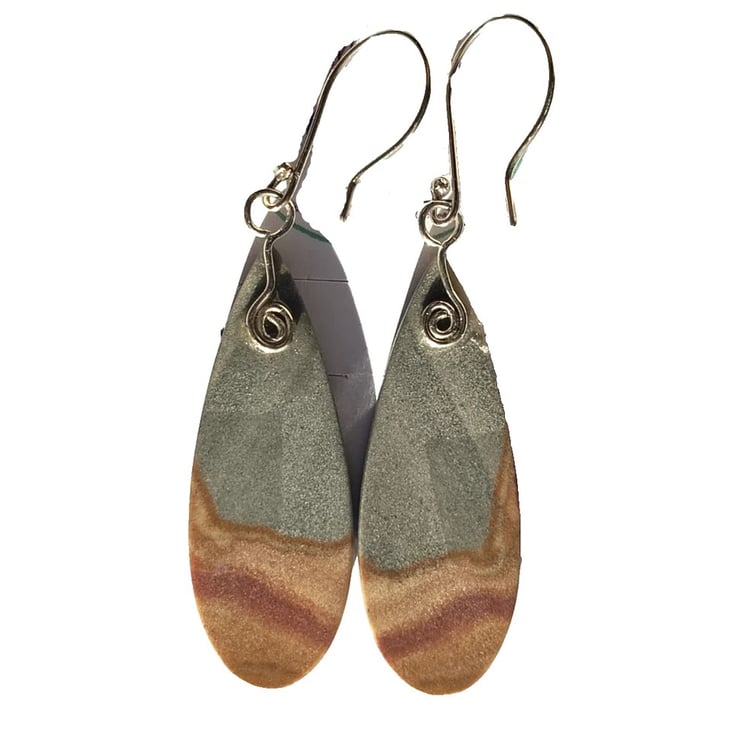 Maligano Jasper Earrings Recycled Sterling Silver Jewellery Gift Teardrop Dangle