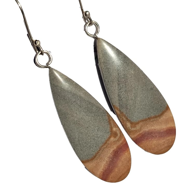 Handcrafted Recycled "Ecosilver" Sterling Silver & Striped Maligano Jasper Earrings