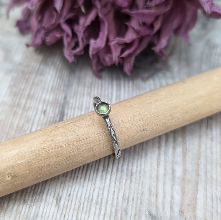 Recycled Sterling Silver Oxidised Patterned Ring with Peridot