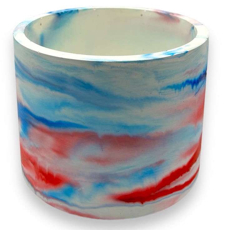 Inspired by the timeless elegance of marble, this marbled red and blue cloudy sky plant pot is crafted from a premium alpha plaster called Stonecast which gives it a smooth and luxurious feel.