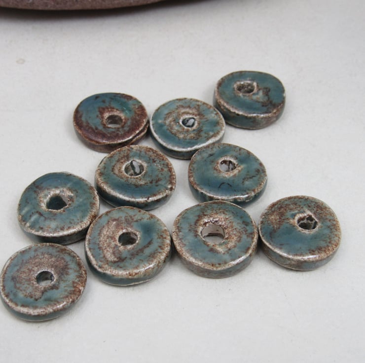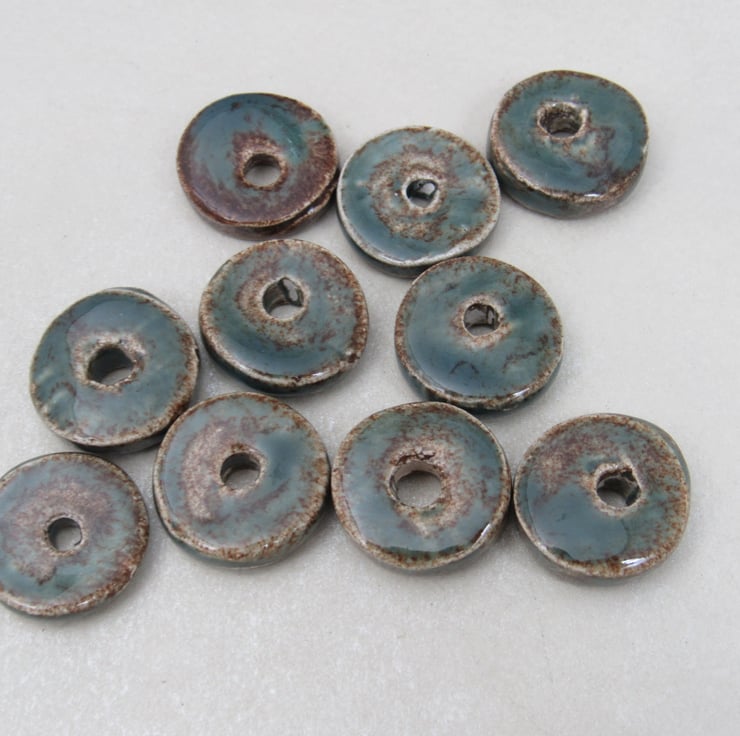 10 chunky donut beads in white stoneware