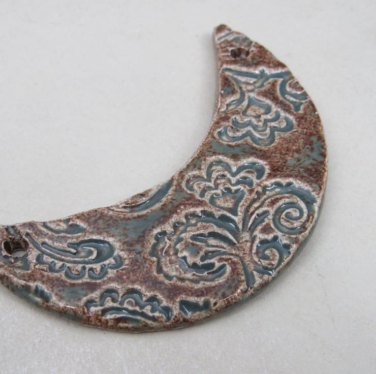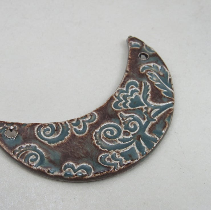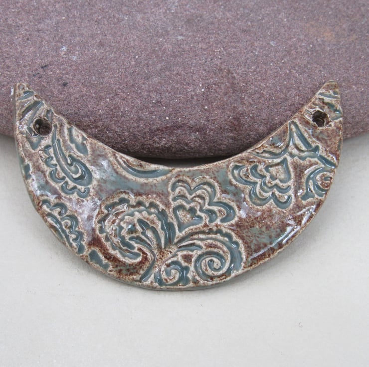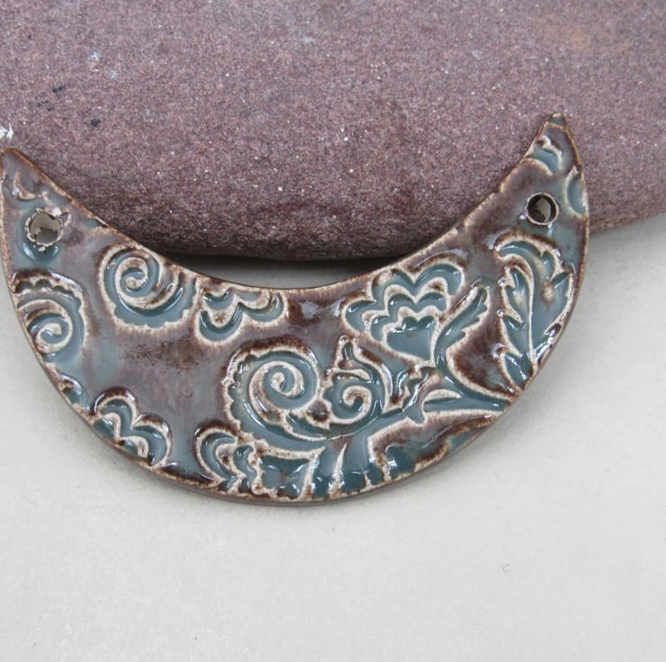 Sedge Green Brocade Ceramic Crescent Bib Pendant