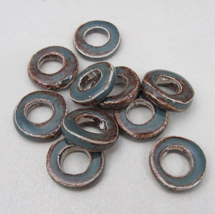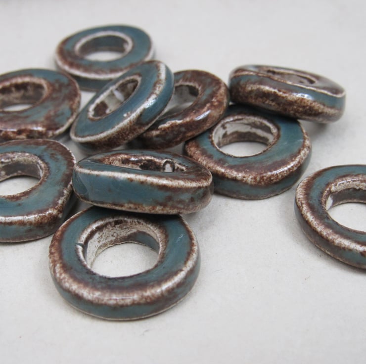 10 chunky donut beads in white stoneware
