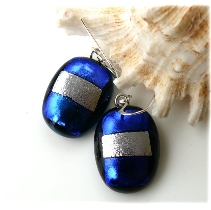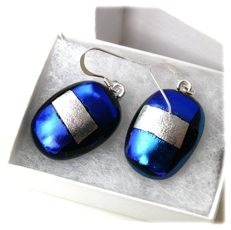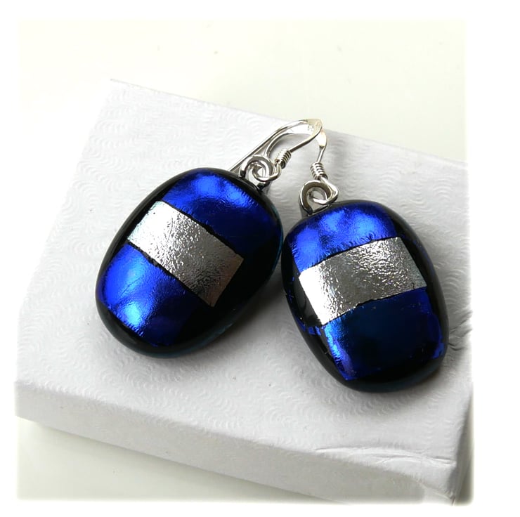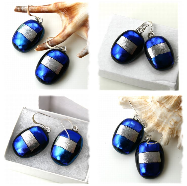 Handmade Fused Dichroic Glass Earrings 300 Blue Silver