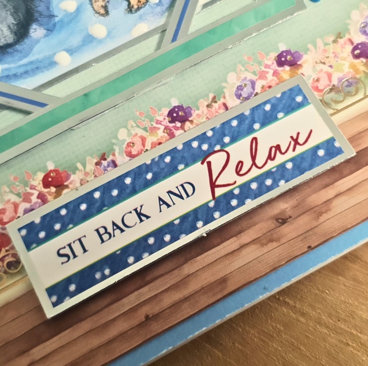 Handmade by The Sloth's Cavern, using the Hunkydory "Sit Back & Relax" Card Topper.