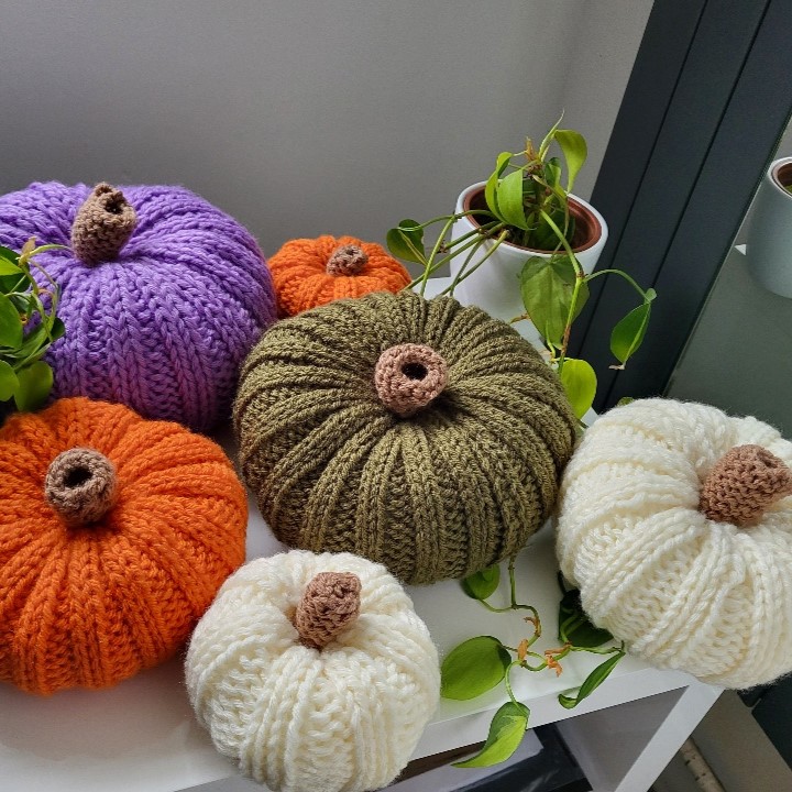 Please do not hesitate to contact me if you would like a pumpkin of a different size or colour - or even a fluffy one!