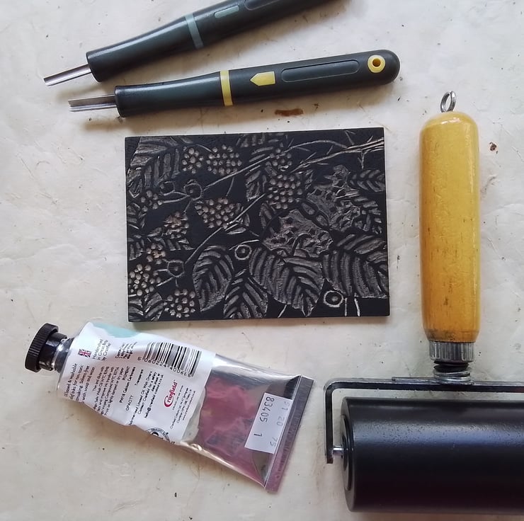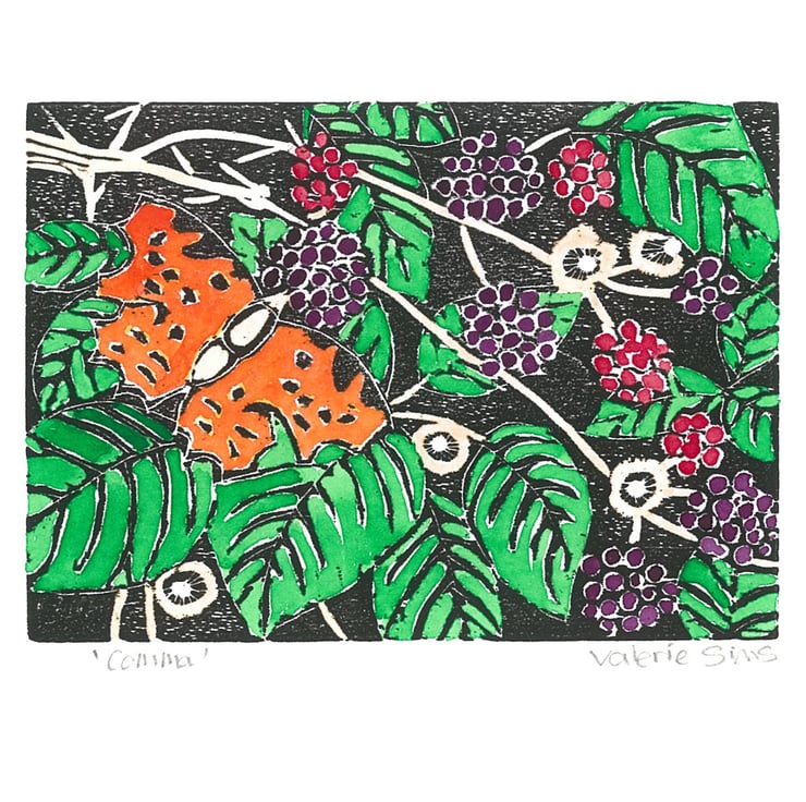 Hand carved woodcut printed on 60% cotton rag soft-white Fabriano Rosaspina 285gsm, coloured with artists watercolours, signed and titled.