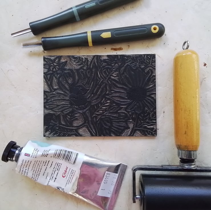 Woodcuts are sold unframed, and sent in a card-backed recyclable clear protective sleeve, packaged with more cardboard.