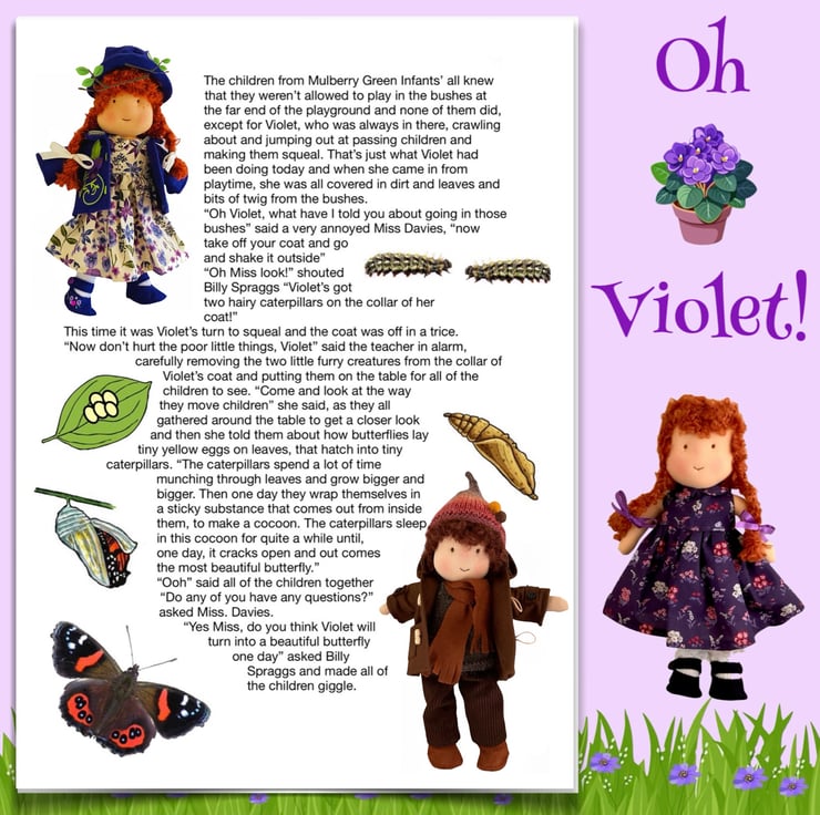 There are other children in Maisy’s class at school - Violet, Billy with his pet rabbit, Amber, Tilly, Rosie and her kittens, Amelia, Ruby, Marigold, Bobby with Max the dog, and the twins Oliver and Olivia, who have a puppy called Oscar. The dolls are all 26cm tall and baby Daisy is 16cm. Maisy and Mo love nothing more than having adventures with their friends. You can read about their adventures on my Facebook and Instagram pages - Maisy Muffin Rag Dolls and on my Mulberry Green Pinterest boards.