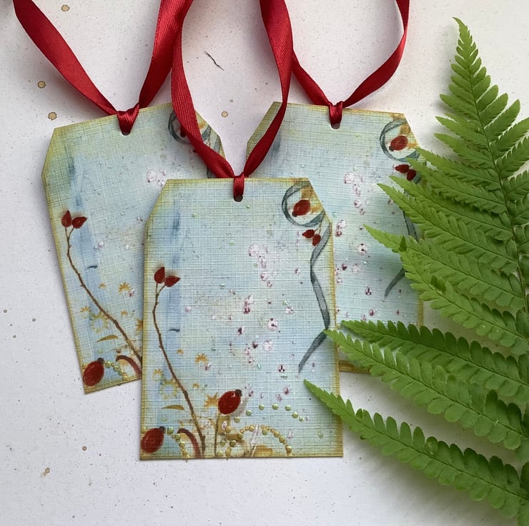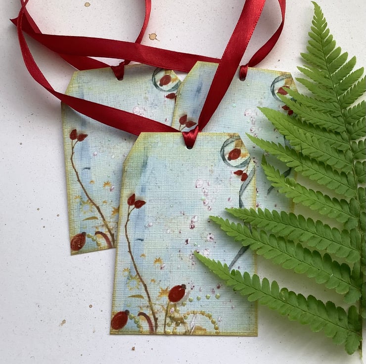 GIFT TAGS ( set of 3) . Autumn , Winter ' Rosehips '...ready to ship...
