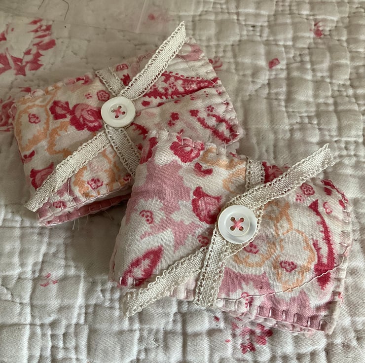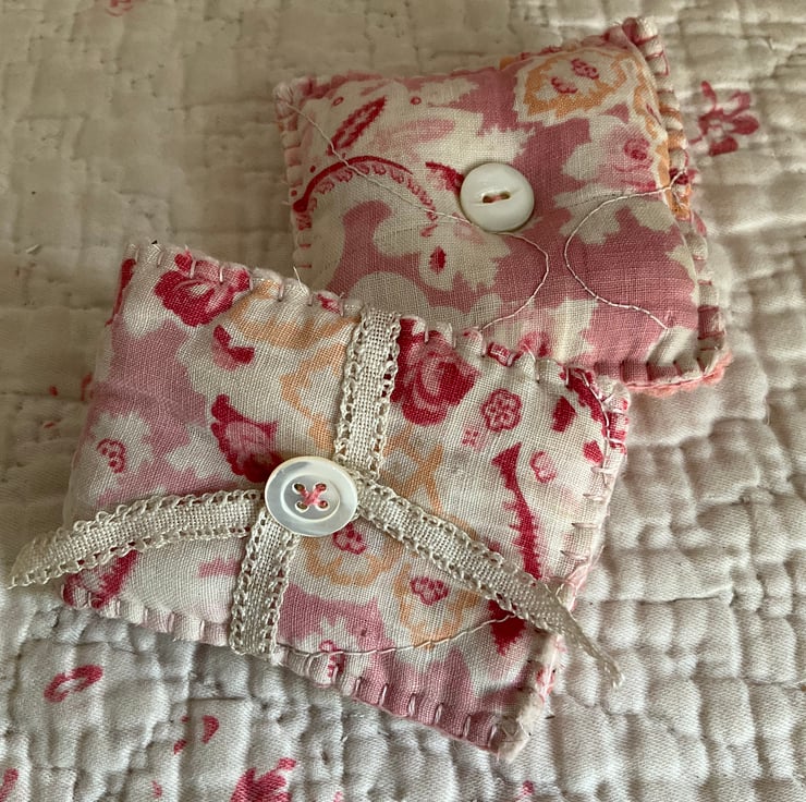 A beautiful needle case made from a piece of vintage quilt. Just slightly smaller than usual, which is reflected in the price. You are purchasing the needle case which is in front, on the second photo.