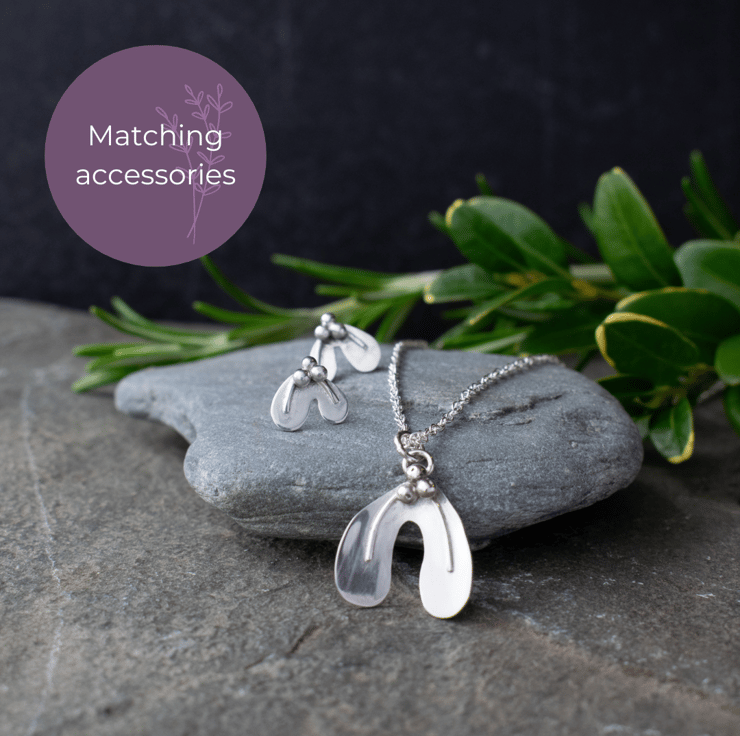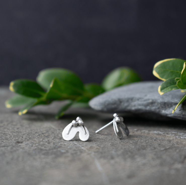 Christmas earrings featuring my original mistletoe leaf design topped with three tiny berries. Handcrafted in sterling silver.