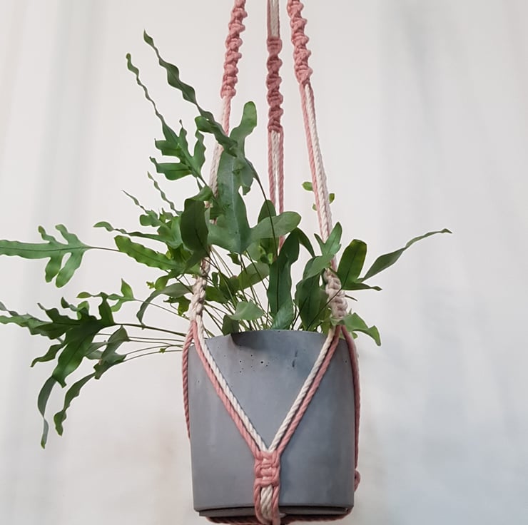 Beautifully handmade made to order macramé plant hanger medium sized. This is perfect for any room and takes a small to medium size pot. Made using 3mm cotton cord, it is super strong so will hold even the longest of hanging houseplants!