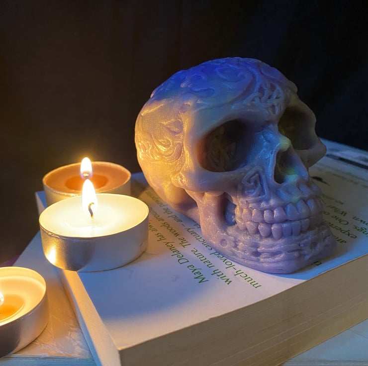 Discover a unique and striking addition to your Halloween decor or Gothic gift collection with our Handmade Vegan Skull Soap. Shaped like a skull and intricately designed with Celtic patterns, this soap offers both style and function.