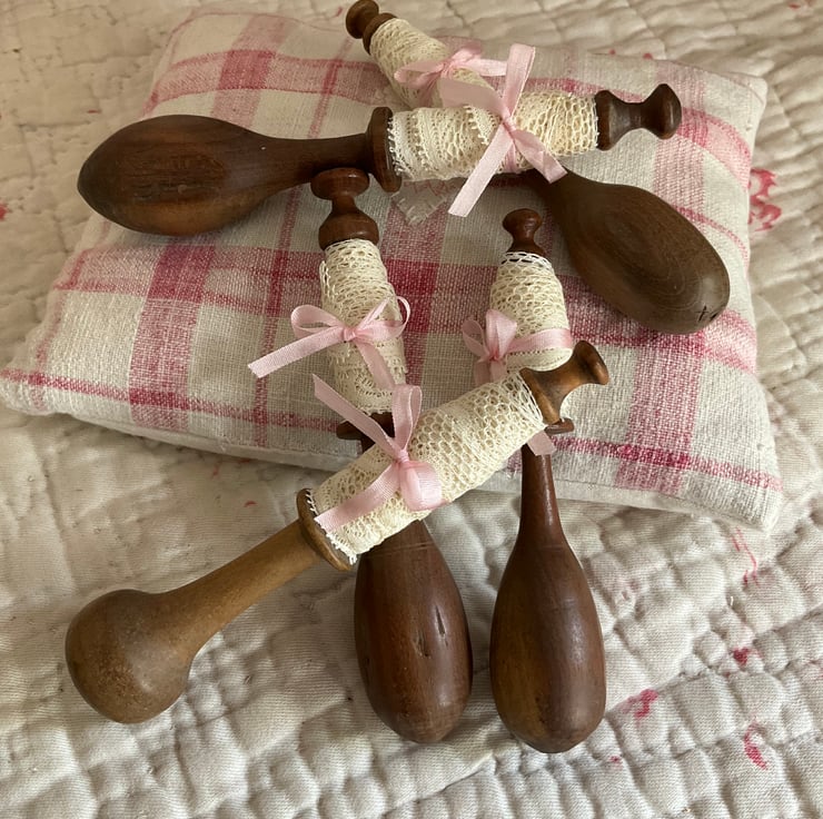 An antique French wooden lace bobbin, which makes a gorgeous display piece.