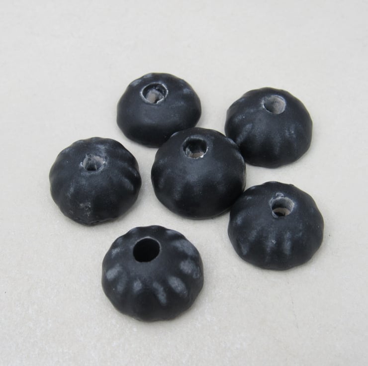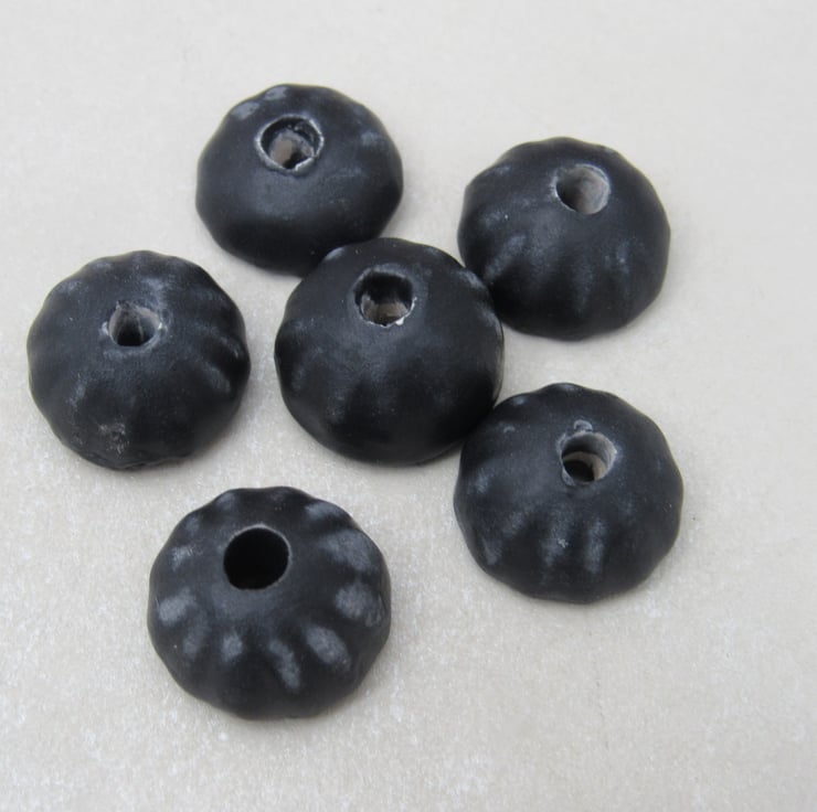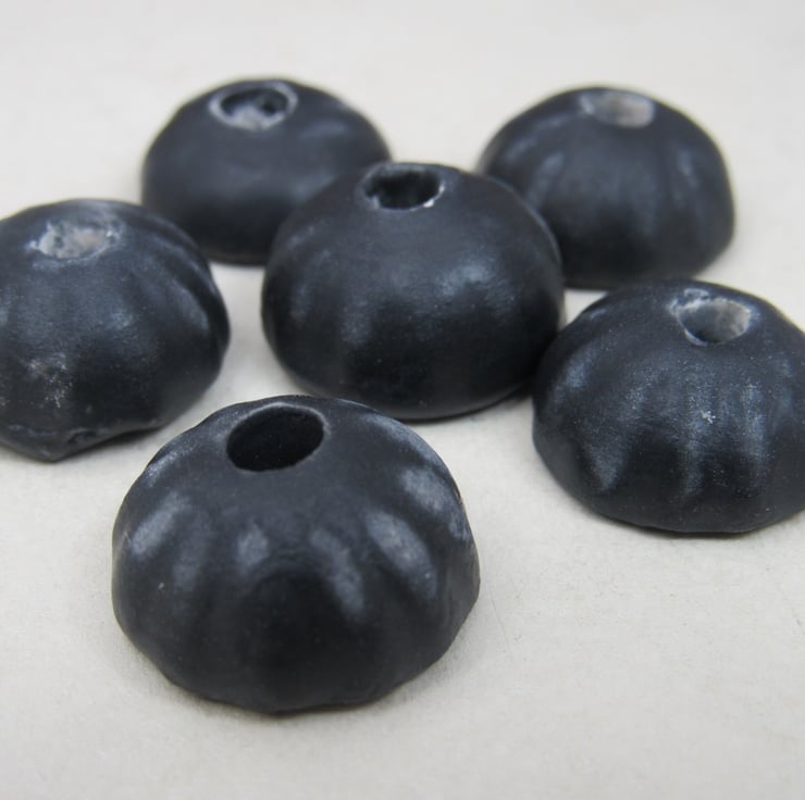 6 small half-round stoneware beads with petal shaped outer
