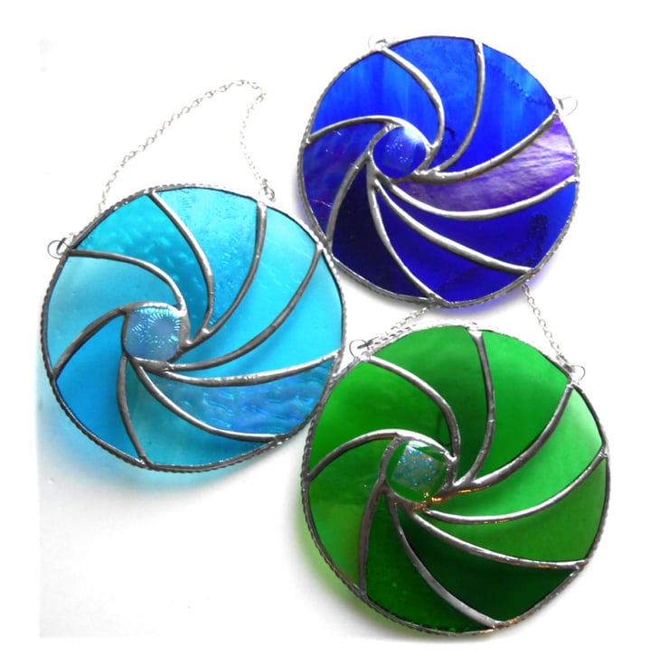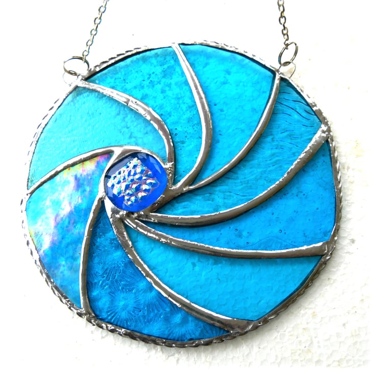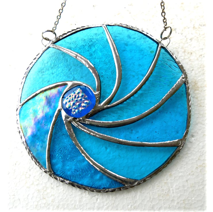 Ripwave Turquoise Stained Glass Suncatcher Handmade Sea 018
