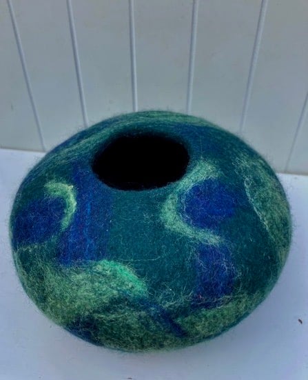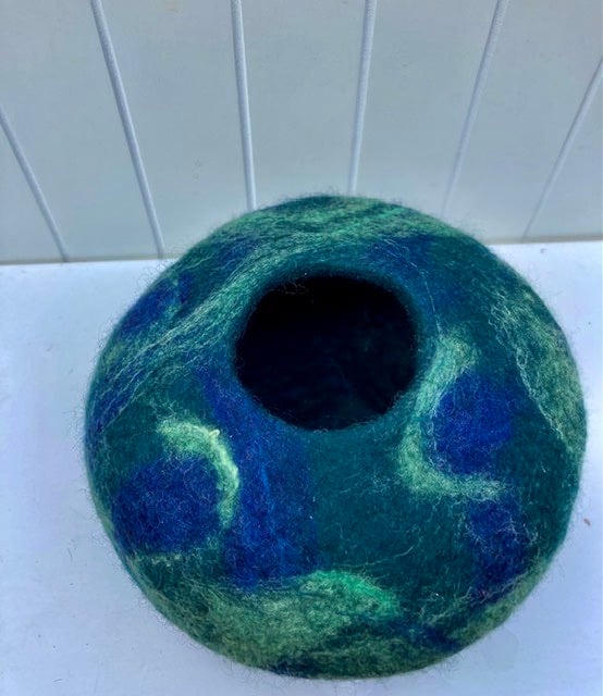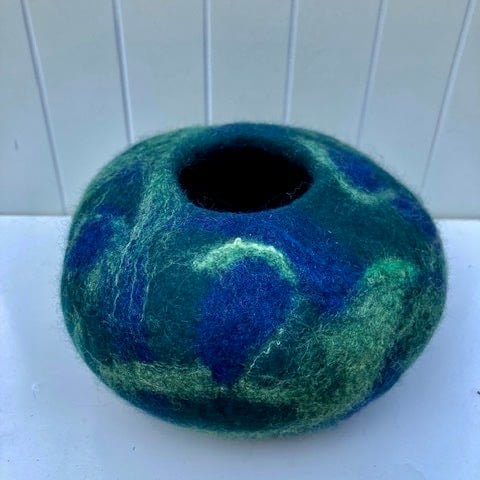 This beautiful felted, organic shaped decorative bowl has been made using the wet felting process.