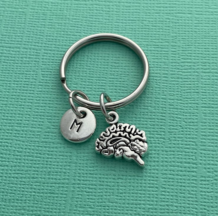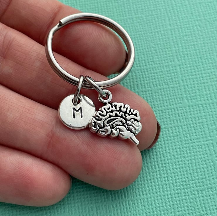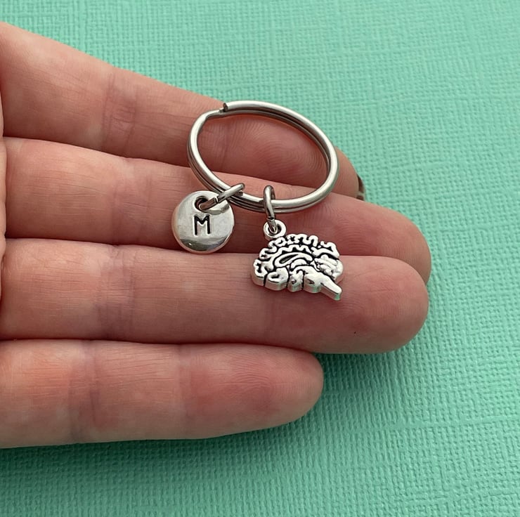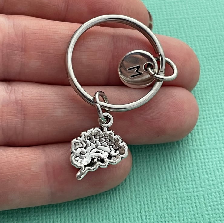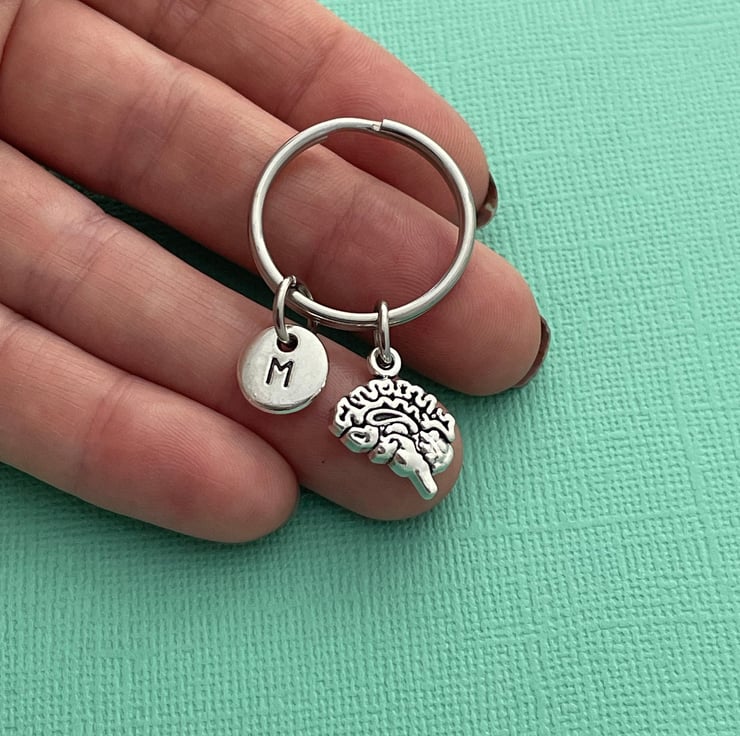 This keyring is made up of a 12.5 x 14mm brain charm, and one letter charm of your choice