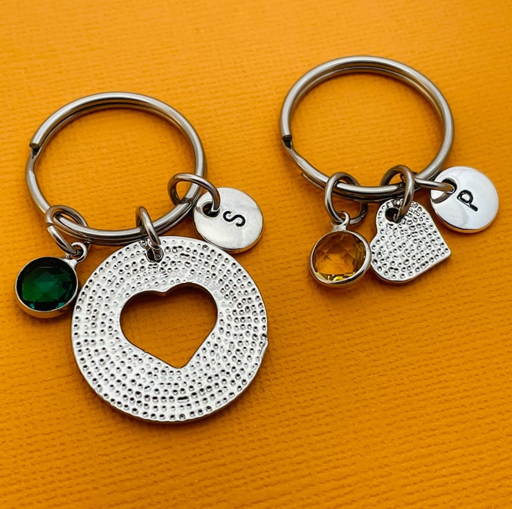 Each keyring is personalised with your choice of birthstone and one letter charm.