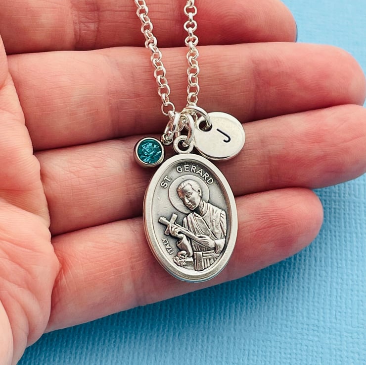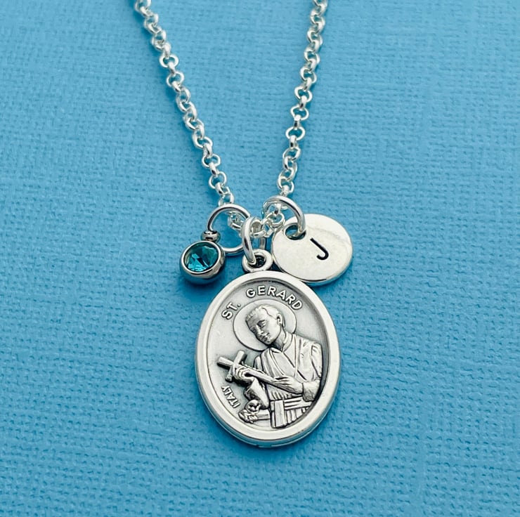 This necklace is made up of a St. Gerard Majella Catholic antique silver-plated oval medal, which measures 1" x 58". Reverse of the medal may differ depending on current stock. Will either have a reverse of Our Lady of Perpetual Help or a Saint Gerard relic.