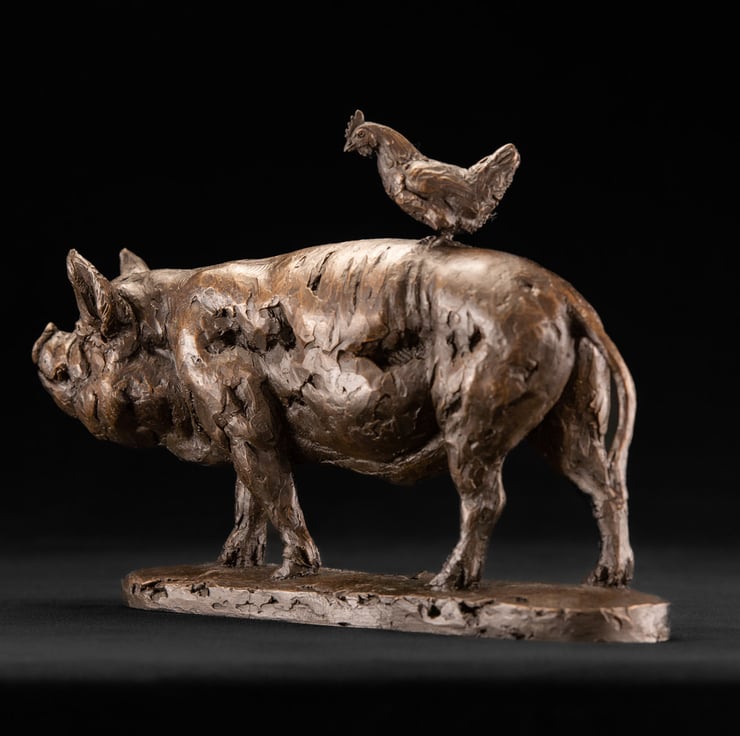 Every one of our bronze animal statues are beautifully packaged with care in tissue paper and our smart, branded Tanya Russell bags, complete with a certificate of authenticity. The perfect collectible for art and wildlife fans, your Pig and chicken statue will be shipped to you double wrapped for extra protection. We ensure that all our packaging is recycled or recyclable wherever possible and carbon-offset with tree planting.