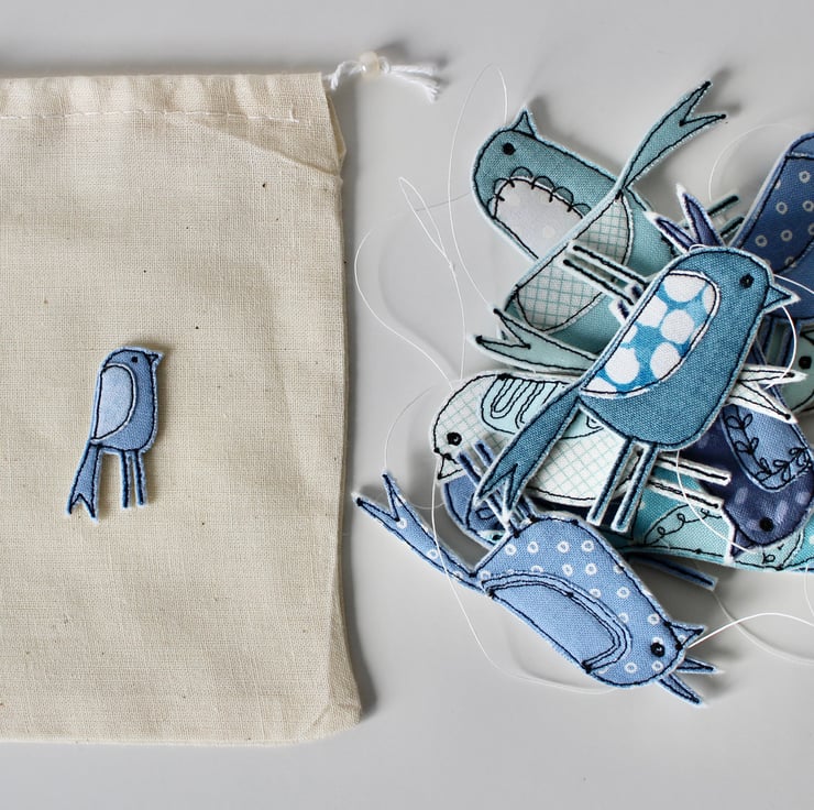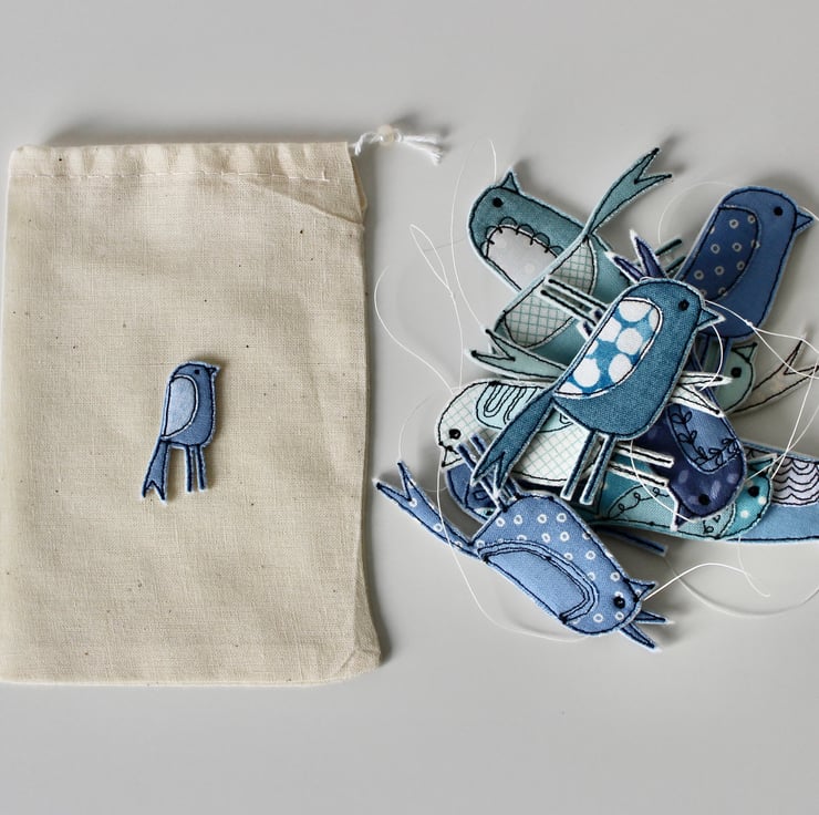 Your garland will be wrapped in tissue and sent in a cream fabric drawstring bag with a little birdie to the front.