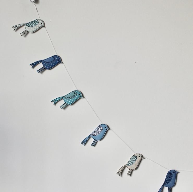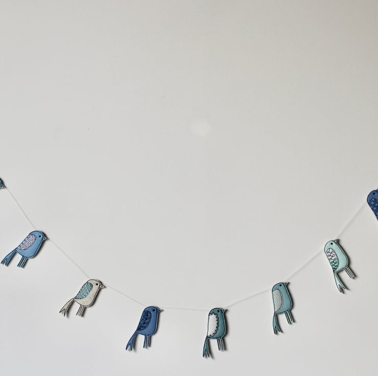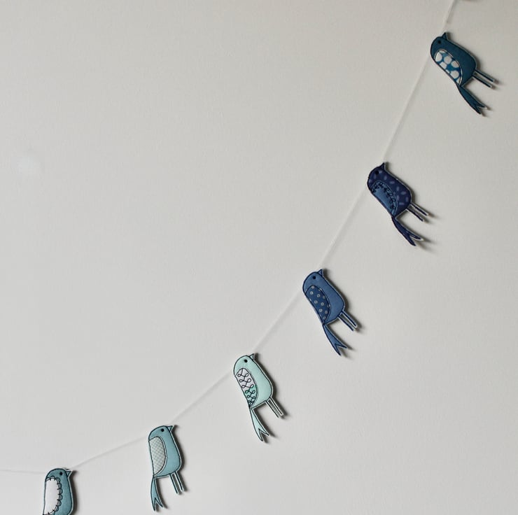 The birdies are suspended on a linen thread and can be moved along the length, allowing a little creativity with spacing.