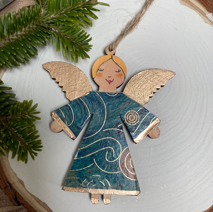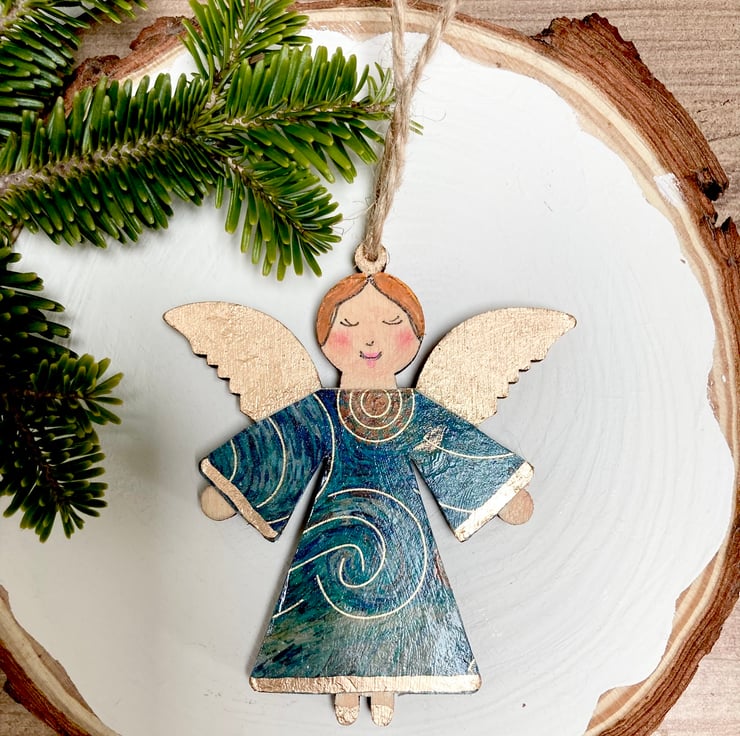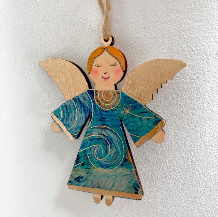 These beautiful little folk art angels have been inspired by Vincent Van Gogh's Starry Night and Sunflower paintings.