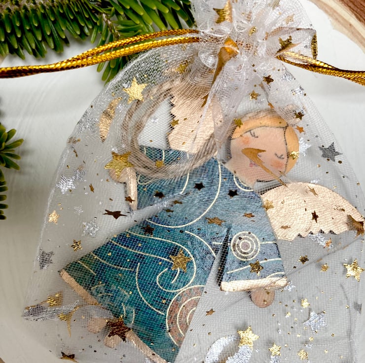 Each Angel is presented in a drawstring pouch.