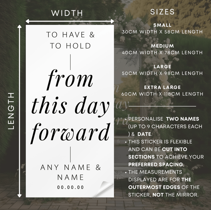 Celebrate your special day with a beautifully crafted personalised wedding mirror or signboard sticker featuring the timeless quote "To Have and To Hold." This elegant decal is the perfect touch for your wedding decor, whether displayed on a mirror, signboard, or any other smooth surface.