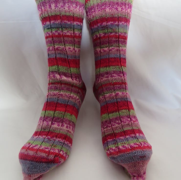 Knitted Ribbed Wool Socks size 8 to 9 UK comfortable fit
