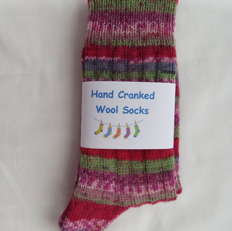 Hand-cranked Knitted Ribbed Wool Socks Size 8 to 9