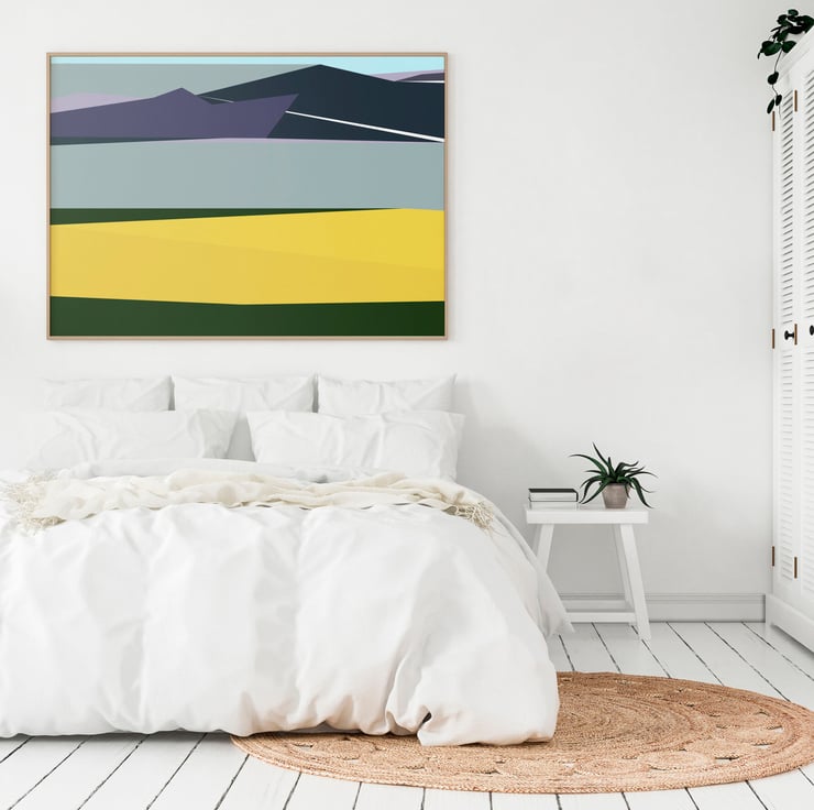 The golden tones of the wheat are rendered in sharp, angular shapes, symbolising the strength and resilience of the crop, while dark, dynamic lines and muted hues evoke the power and turbulence of the approaching storm. The juxtaposition of these elements creates a visually compelling composition that conveys both the beauty and intensity of nature.