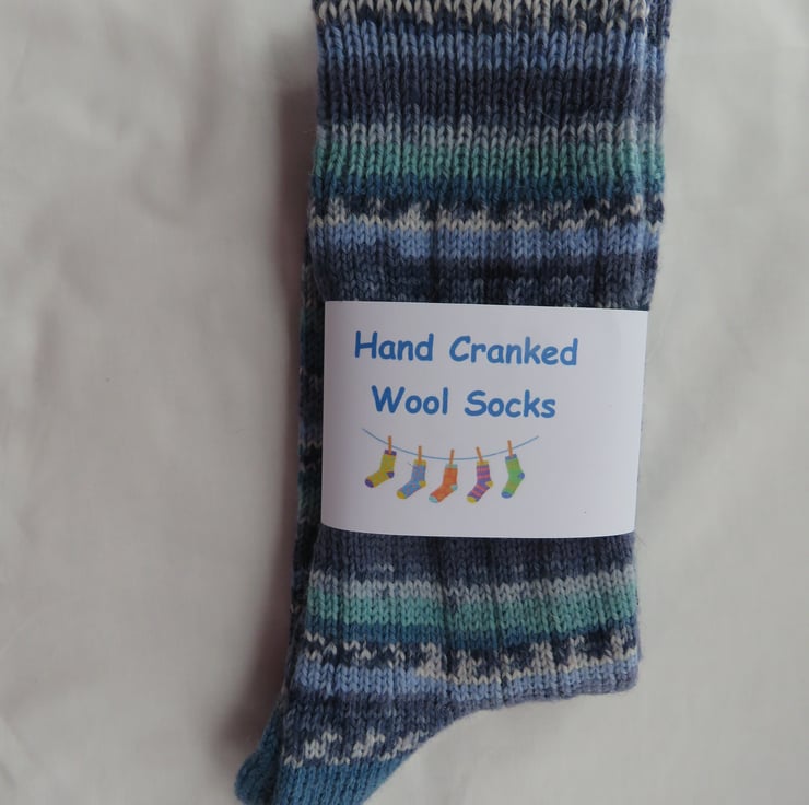 Hand-cranked Knitted Ribbed Wool Socks Size 8 to 9