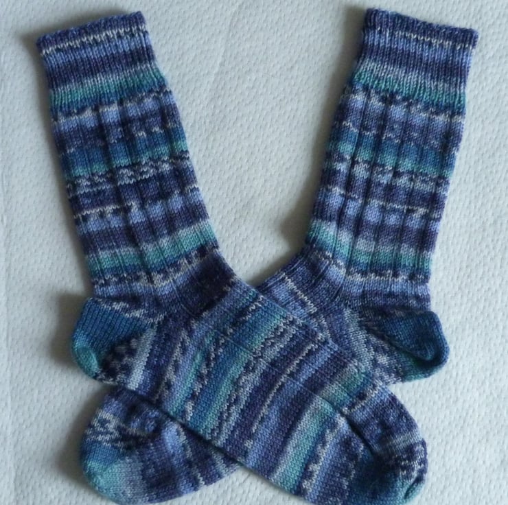 Knitted Ribbed Wool Socks size 8 to 9 UK comfortable fit