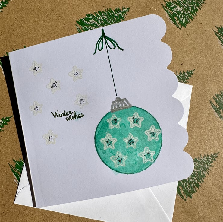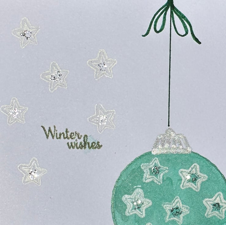 The bauble has been lovingly hand drawn and hand painted with water colours and embellished with sparkles, ink splatter and glitter.