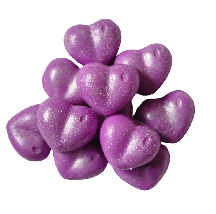 10 luxurious soy wax melt hearts. Handcrafted with premium-quality, responsibly sourced soy wax and infused with one of my most popular fragrances Damson Plum, Rose and Patchouli - a gorgeous scent with late summer tones of fruits and roses, top notes of plum, rose, and orange and warming base notes of patchouli and vanilla. The melts are finished with a light dusting of ice mica to add a shimmer.