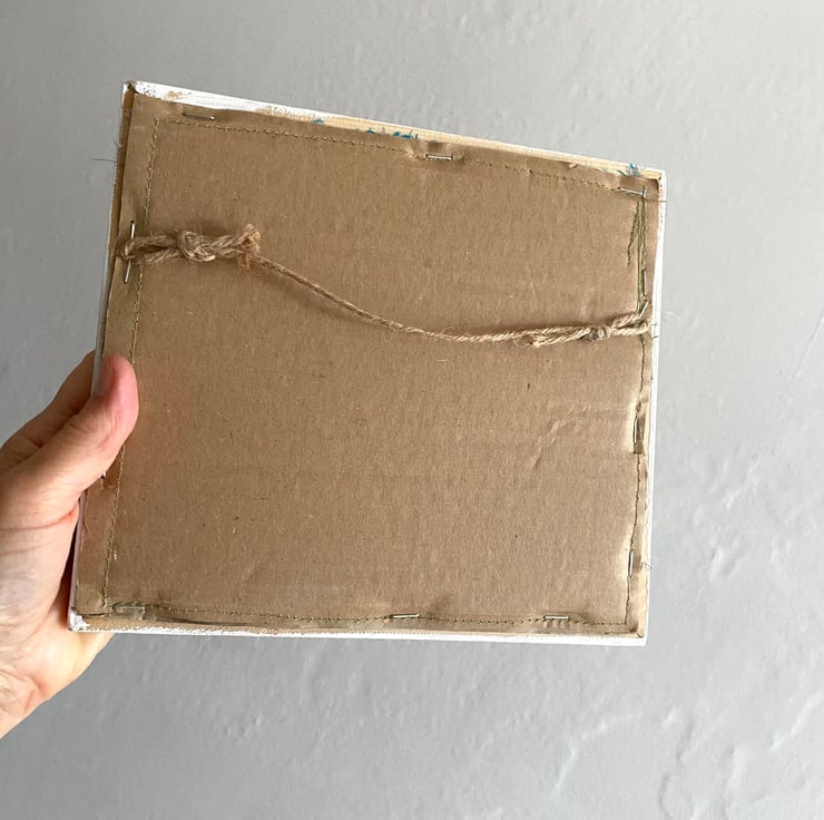 It measures 9x8 inches in its handmade frame.