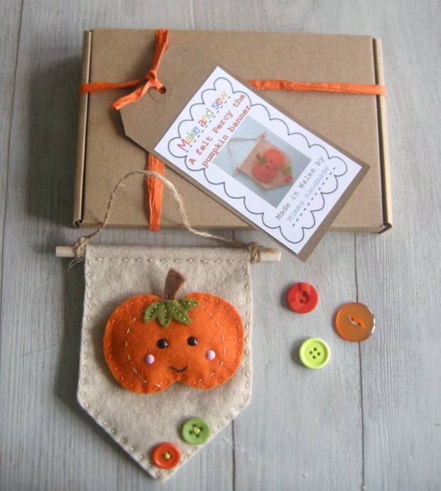 halloween craft kit, sewing kit pumpkin banner sewing kit