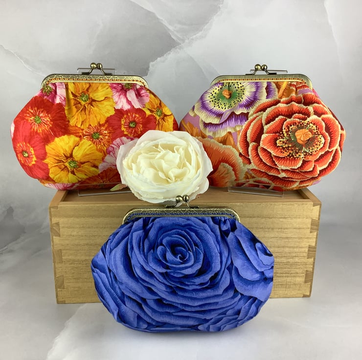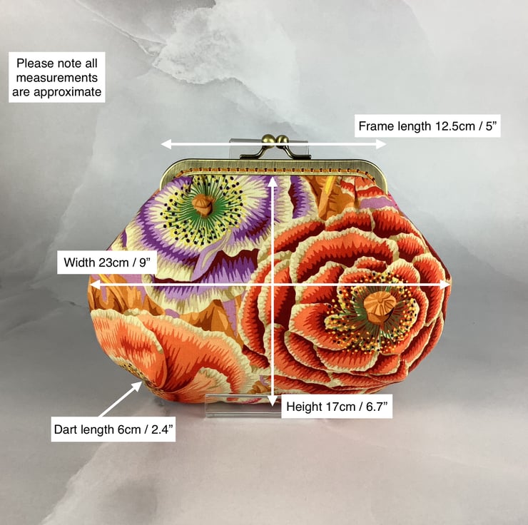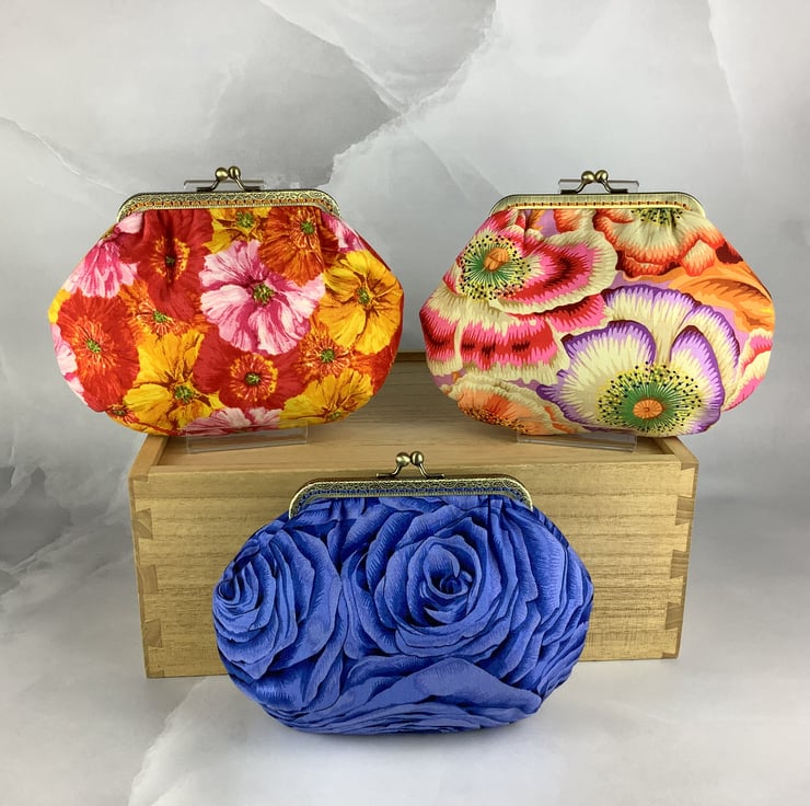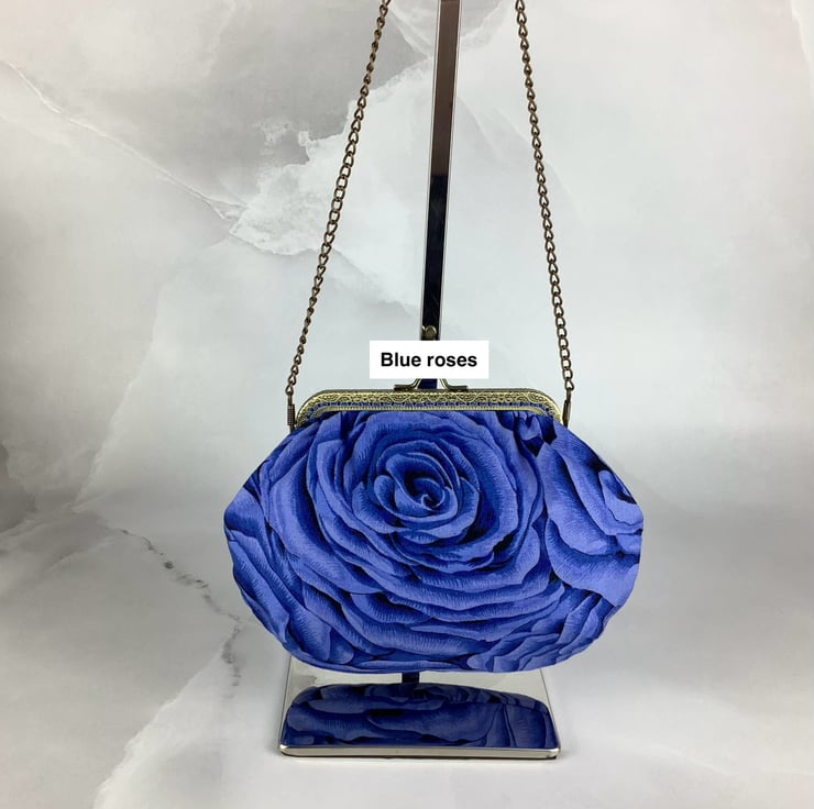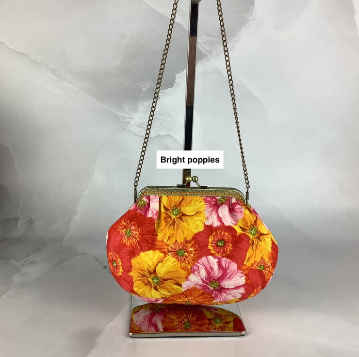 Handmade bag with a kiss clasp frame in a choice of stunning cotton fabric.
