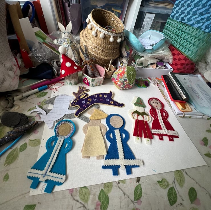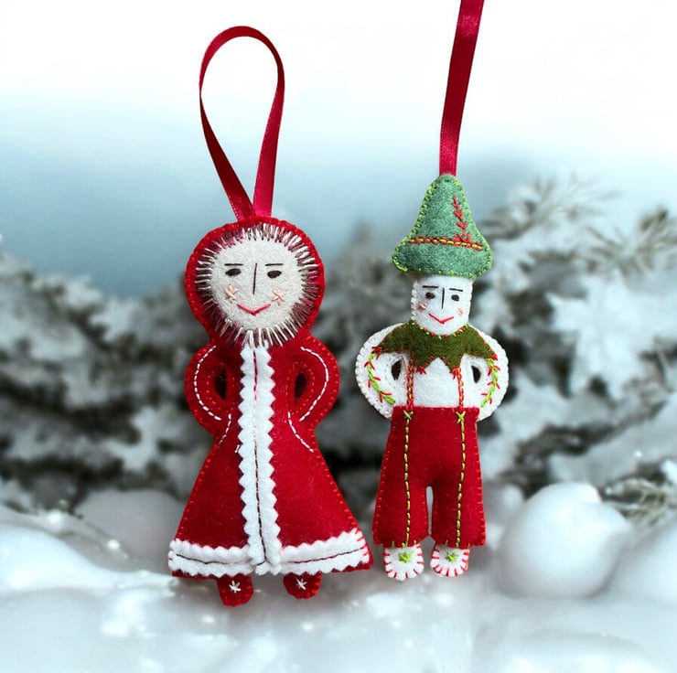 All of my makes are eco friendly and made to last from 100% wool felt and stuffed with washed wool fleece sourced from Yorkshire. I use DMC cotton thread to embroider folk patterns and stitches creating totally unique heirloom treasures.