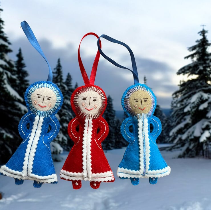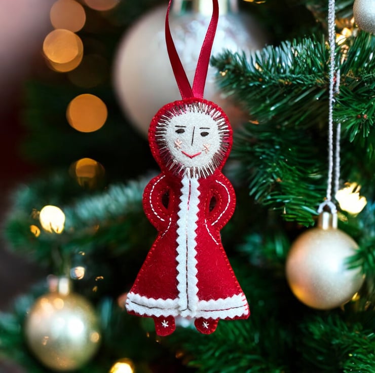 This Snow Girl felt Christmas ornament would look very festive hanging on your Xmas tree. She would also be a lovely surprise addition to a Christmas Eve box.