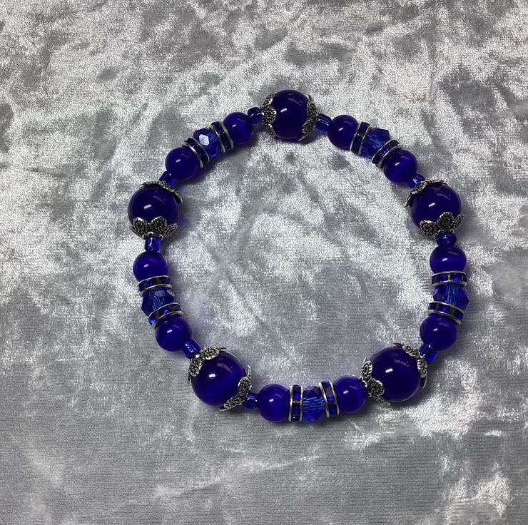 Handmade from 12 mm, 10 mm,8 mm Natural Moon Stone Beads blue Cat Eye Beads , mix Glass Czech Beads . Stretch Magic 0.7mm Bead and Jewellery Cord Been double wrap for better strength. Please note: Colours may vary due to different viewing platforms and devices.
