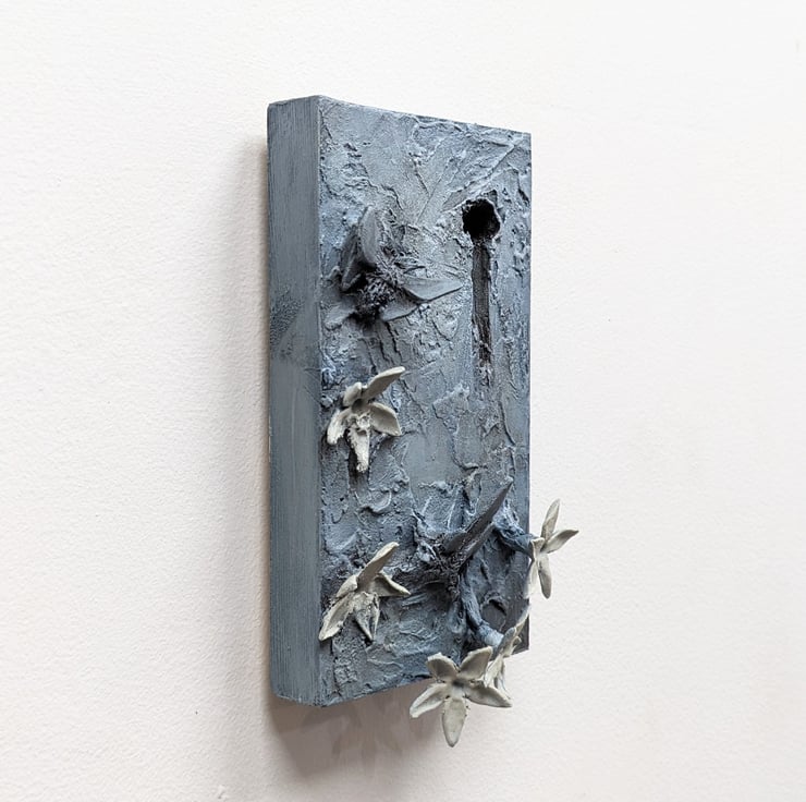 These sculptures are part of a larger project which takes inspiration from an old house which exists in another place, a dream realm where all is not quite as it seems. It is inhabited by various beings and full of strange objects. Moths frequently fly in and out of the walls and through picture frames.