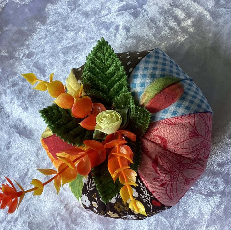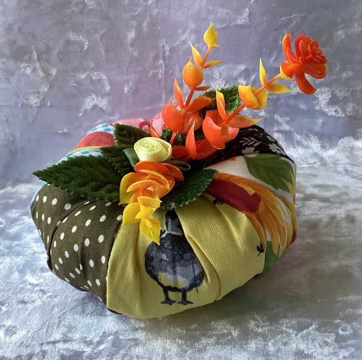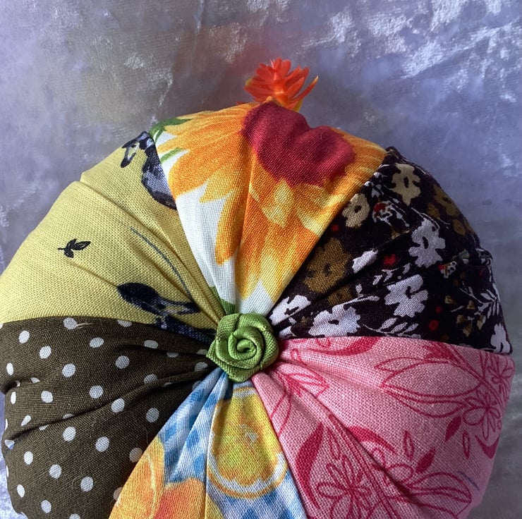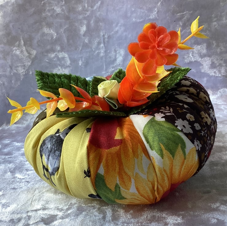 Small pumpkin, fabric pumpkin, cotton deco, floral.