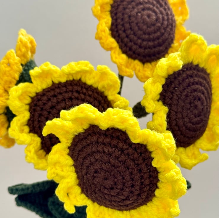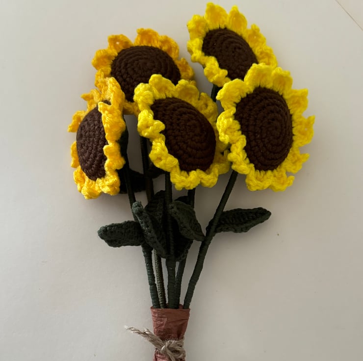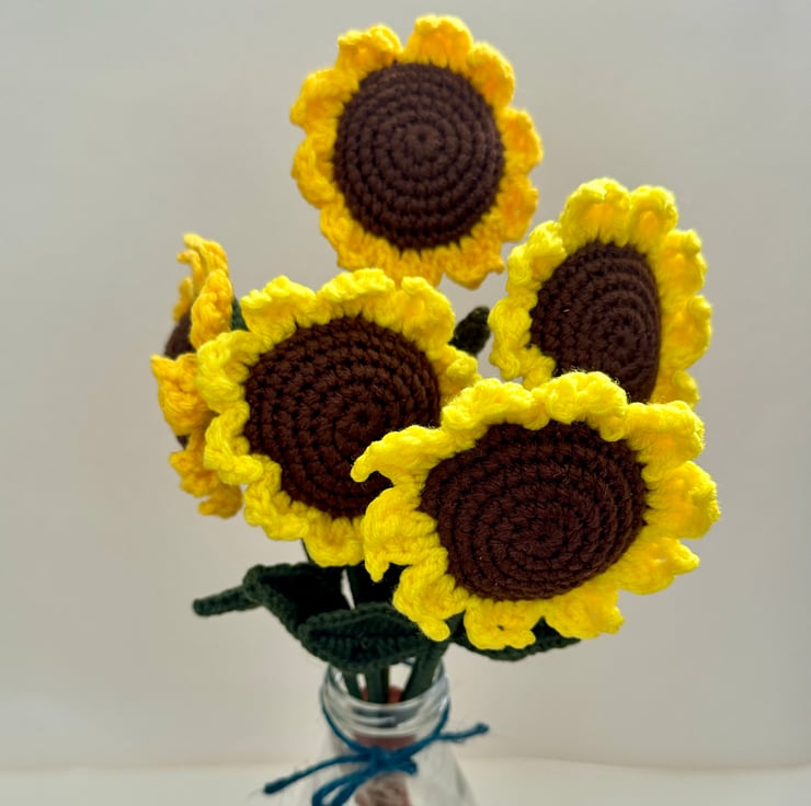 Crochet sunflower bouquet. Everlasting sunflowers will cheer up any part of your home.