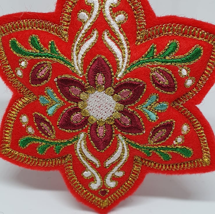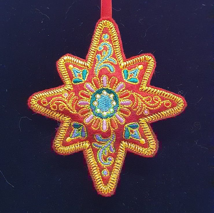 Machine embroidered design on washable felt and filled with hypoallergenic fiberfill.