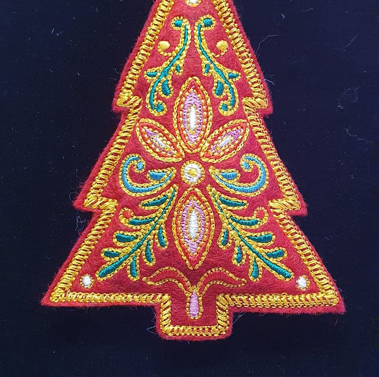 Handmade felt Christmas tree decorations.