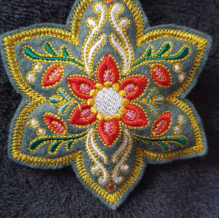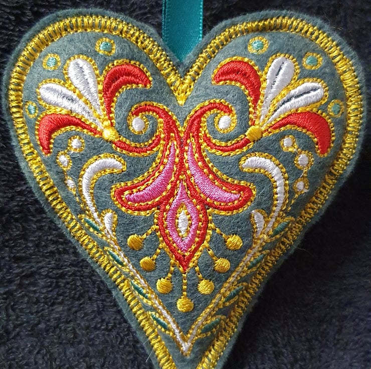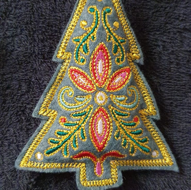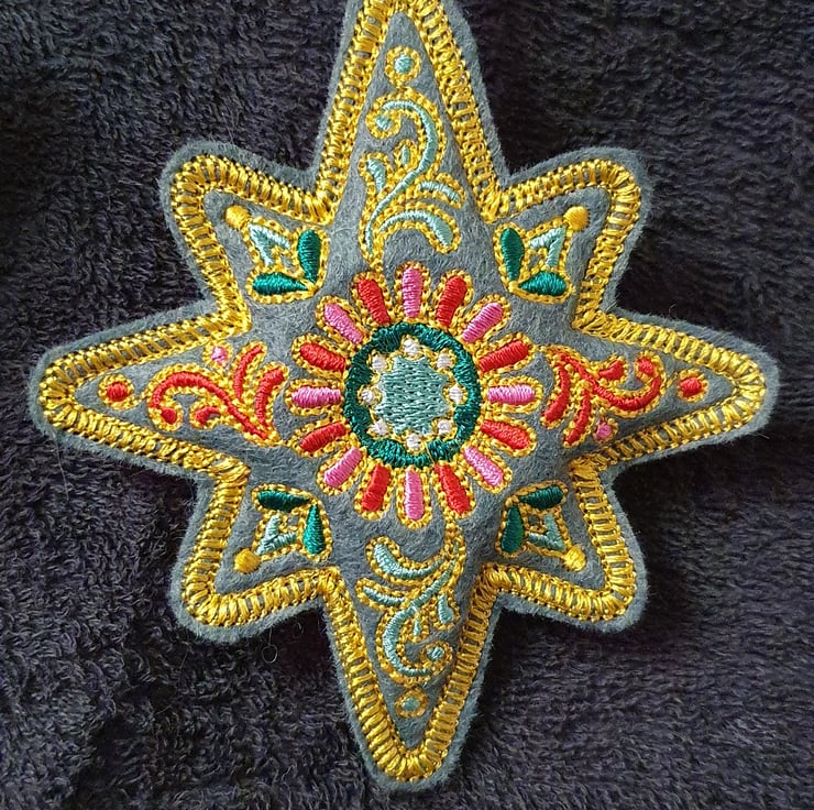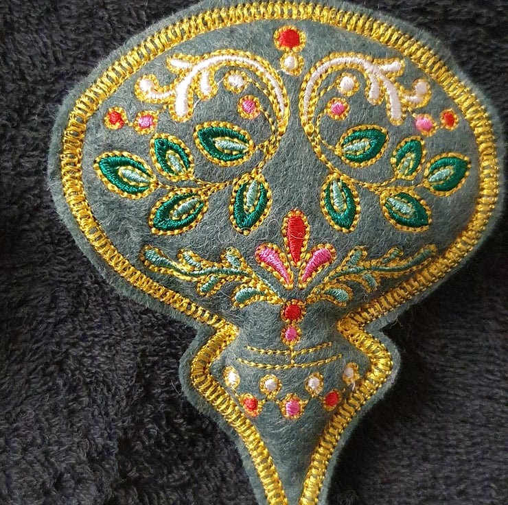 Machine embroidered design on washable felt and filled with hypoallergenic fiberfill.